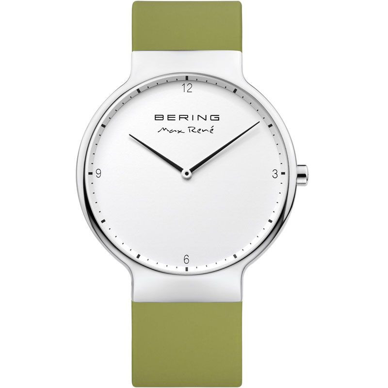 The material of the Bering Max Rene men's watch 15540-800 watch case is stainless steel, its color is silver, the material of the strap is silicon and its color is green. The diameter of the watch case is 40 mm, its shape is wheel. The glass of the watch is sapphire (scratch free), its mechanism is quartz, and its water resistance is 5 atm (50m) (highly drop resistant).