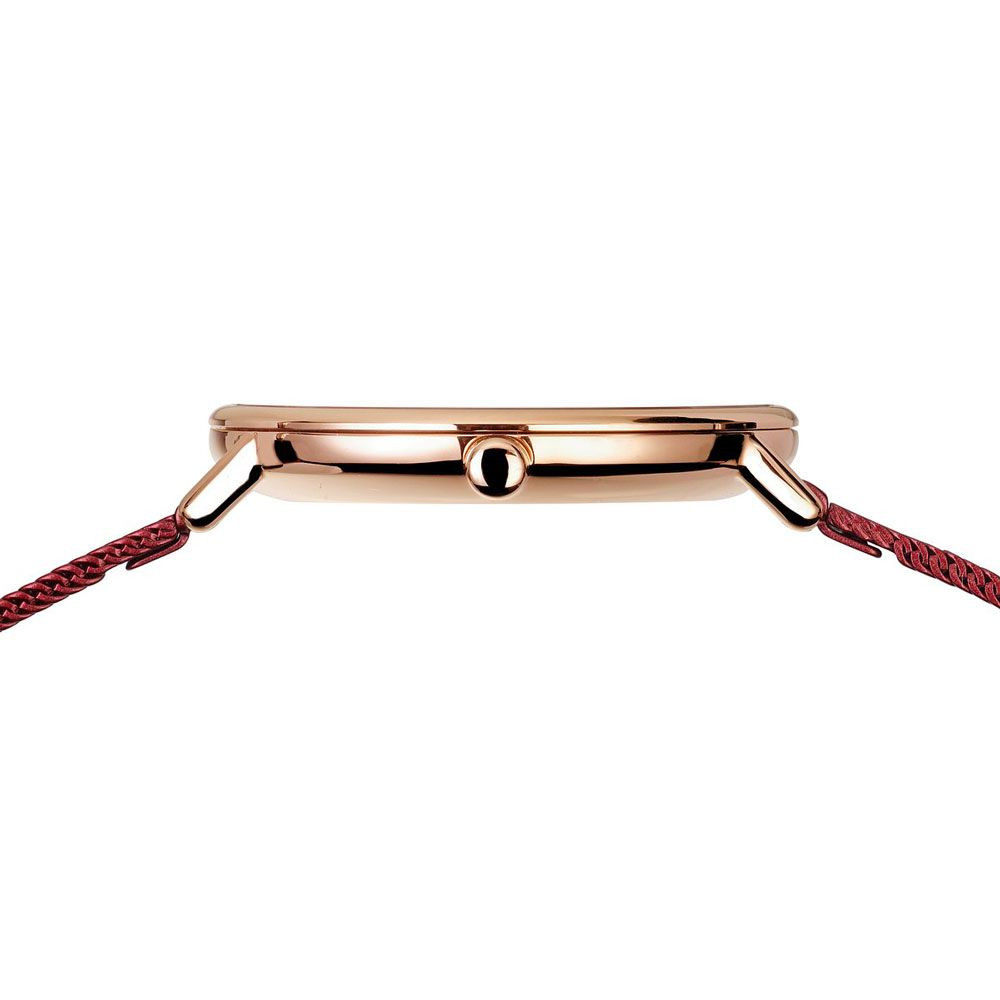 The material of the Bering Ultra Slim women's watch 15729-363 watch case is stainless steel, its color is rose gold, the material of the strap is stainless steel and its color is red. The diameter of the watch case is 29 mm, its shape is wheel. The glass of the watch is sapphire (scratch free), its mechanism is quartz, and its water resistance is 3 atm (30m) (drip-free).