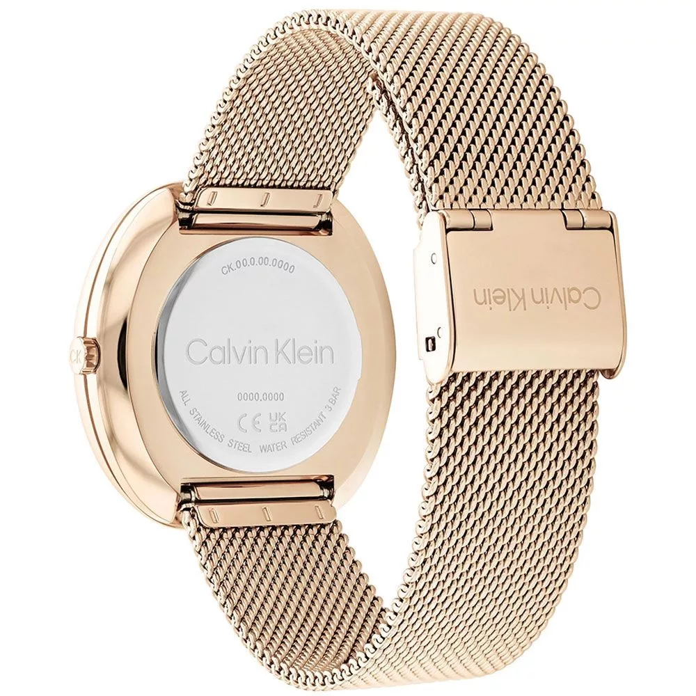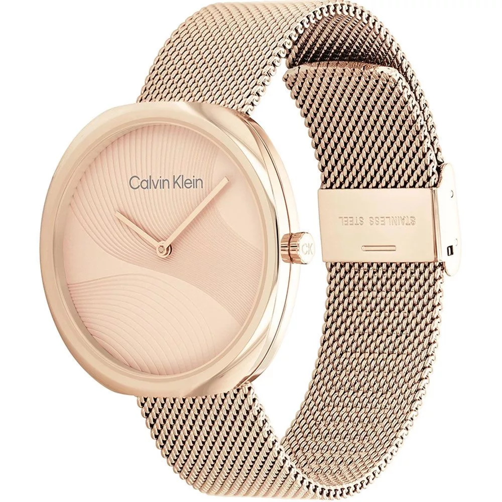 The material of the Calvin Klein Sculpt women's watch CK25200247 watch case is stainless steel, its color is rose gold, the material of the strap is stainless steel and its color is rose gold. The diameter of the watch case is 37 mm, its shape is wheel. The glass of the watch is crystal (difficult to scratch), its mechanism is quartz, and its water resistance is 3 atm (30m) (drip-free).