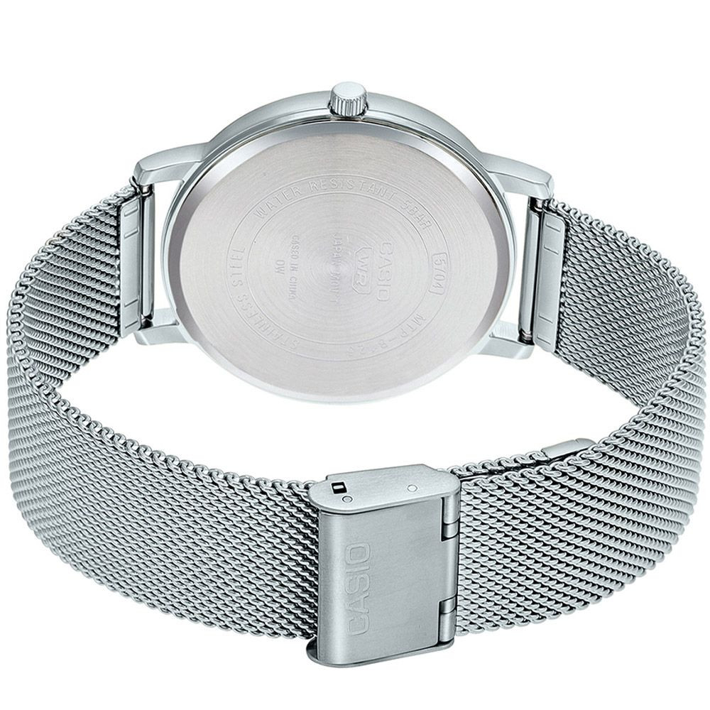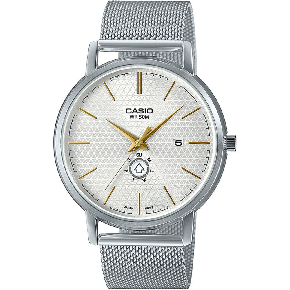 The material of the Casio Collection men's watch MTP-B125M-7AVEF watch case is stainless steel, its color is silver, the material of the strap is stainless steel and its color is silver. The diameter of the watch case is 41 mm, its shape is wheel. The glass of the watch is crystal (difficult to scratch), its mechanism is quartz, and its water resistance is 5 atm (50m) (highly drop resistant).