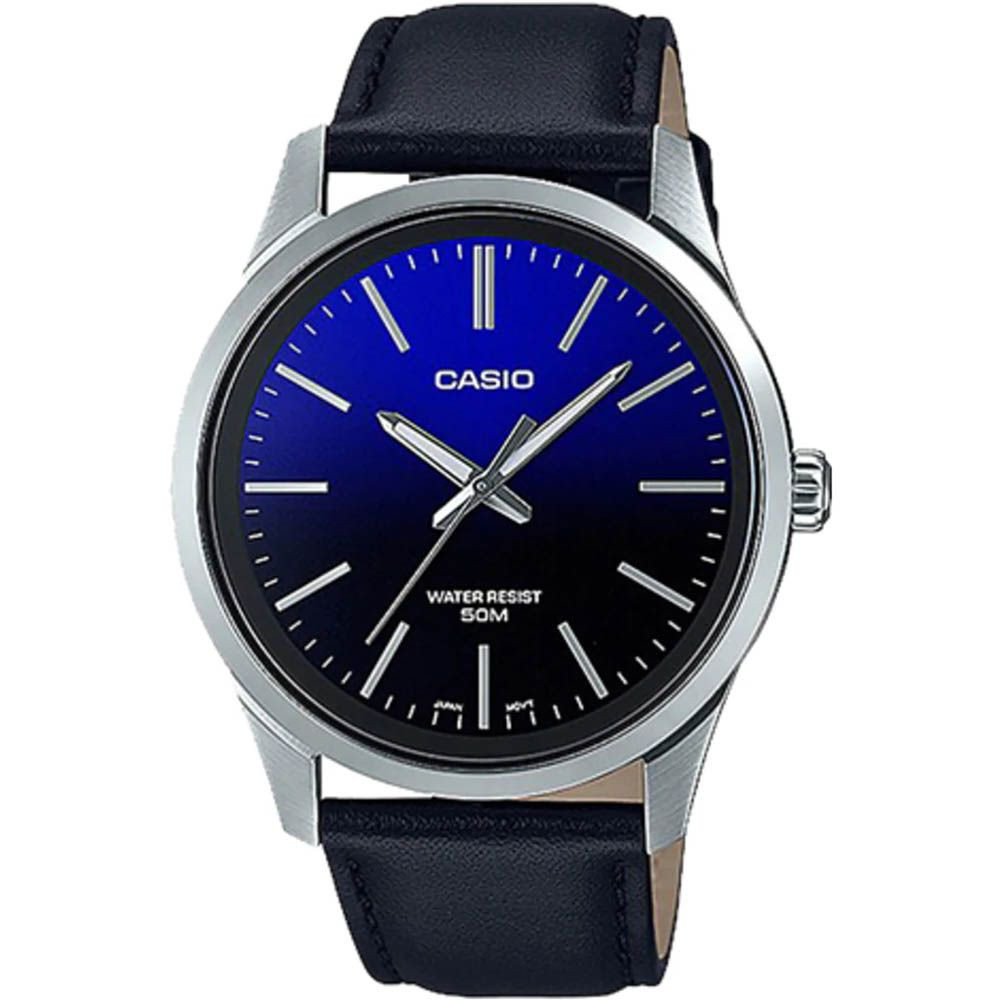 The material of the Casio Collection men's watch MTP-E180L-2AVEF watch case is stainless steel, its color is silver, the material of the strap is leather and its color is black. The diameter of the watch case is 42 mm, its shape is wheel. The glass of the watch is crystal (difficult to scratch), its mechanism is quartz, and its water resistance is 5 atm (50m) (highly drop resistant).
