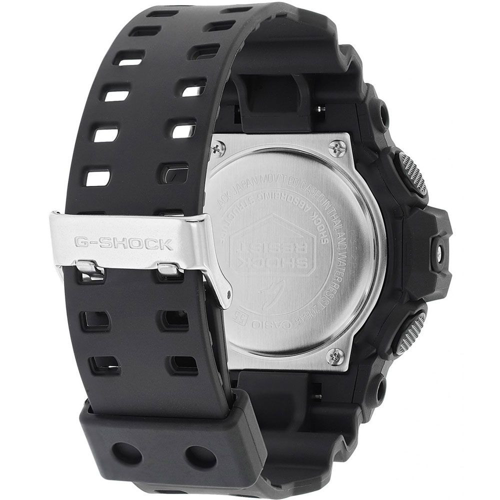 The material of the Casio G-Shock men's watch GA-700MG-1AER watch case is plastic, its color is black, the material of the strap is plastic and its color is black. The diameter of the watch case is 53 mm, its shape is wheel. The glass of the watch is crystal (difficult to scratch), its mechanism is quartz, and its water resistance is 20 atm (200m) (suitable for diving).