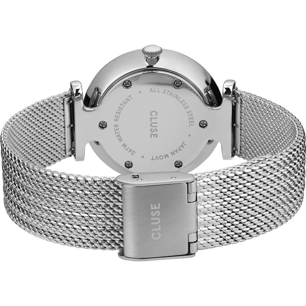 The material of the Cluse Triomphe women's watch CW10402 watch case is stainless steel, its color is silver, the material of the strap is stainless steel and its color is silver. The diameter of the watch case is 33 mm, its shape is wheel. The glass of the watch is crystal (difficult to scratch), its mechanism is quartz, and its water resistance is 3 atm (30m) (drip-free).