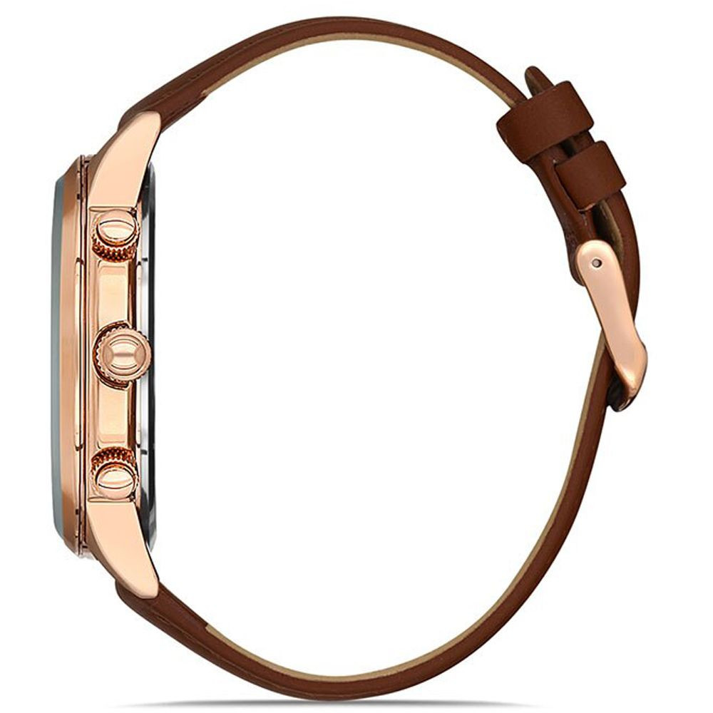 The material of the Daniel Klein Exclusive men's watch DK.1.13116-4 watch case is metal alloy, its color is rose gold, the material of the strap is leather and its color is brown. The diameter of the watch case is 47 mm, its shape is wheel. The glass of the watch is crystal (difficult to scratch), its mechanism is quartz, and its water resistance is 5 atm (50m) (highly drop resistant).