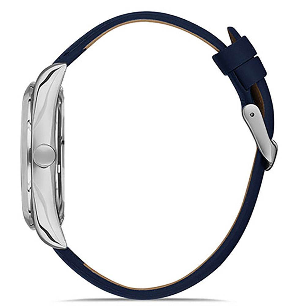 The material of the Daniel Klein Supreme men's watch DK.1.13408-3 watch case is stainless steel, its color is silver, the material of the strap is leather and its color is blue. The diameter of the watch case is 41 mm, its shape is wheel. The glass of the watch is crystal (difficult to scratch), its mechanism is quartz, and its water resistance is 5 atm (50m) (highly drop resistant).
