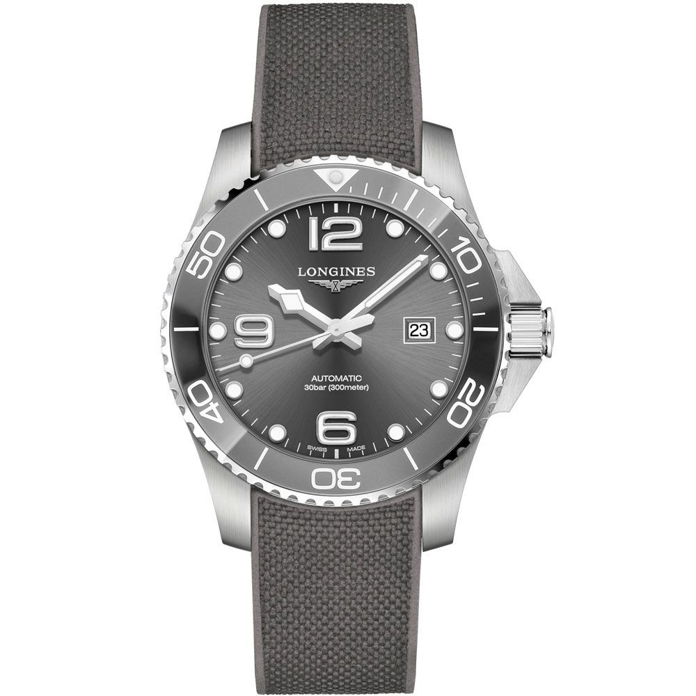 The material of the Longines HydroConquest men's watch L3.782.4.76.9 watch case is stainless steel, its color is silver, the material of the strap is silicon and its color is gray. The diameter of the watch case is 43 mm, its shape is wheel. The glass of the watch is sapphire (scratch free), its mechanism is automatic, and its water resistance is 30 atm (300m) (suitable for diving).