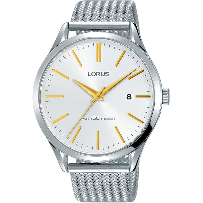The material of the Lorus Classic men's watch RS925DX-9 watch case is stainless steel, its color is silver, the material of the strap is stainless steel and its color is silver. The diameter of the watch case is 42 mm, its shape is wheel. The glass of the watch is crystal (difficult to scratch), its mechanism is quartz, and its water resistance is 5 atm (50m) (highly drop resistant).