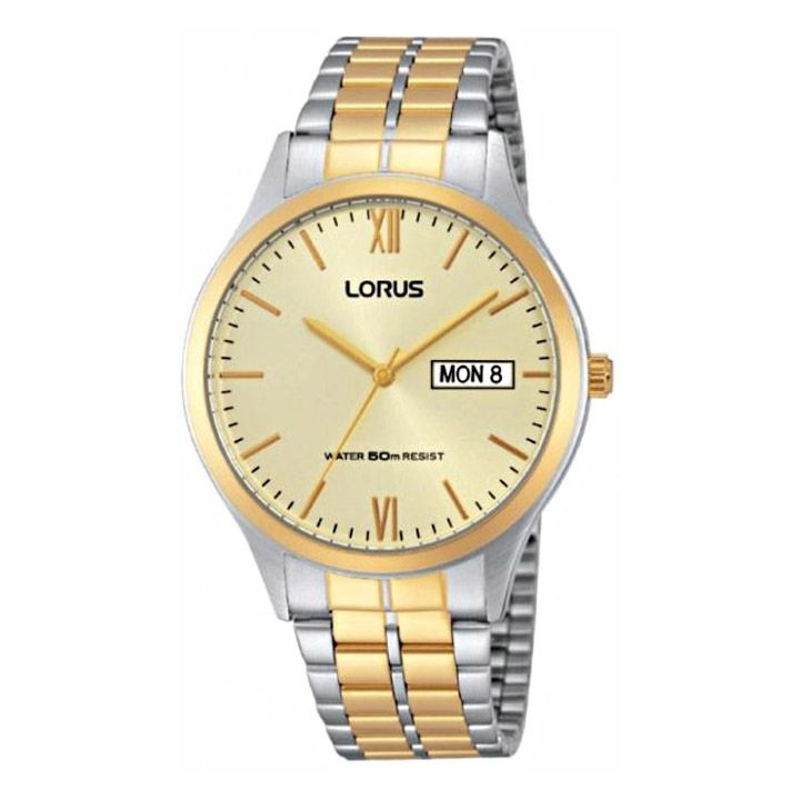 The material of the Lorus Classic men's watch RXN08DX-9 watch case is stainless steel, its color is silver, the material of the strap is stainless steel and its color is Arany,Ezüst. The diameter of the watch case is 37 mm, its shape is wheel. The glass of the watch is crystal (difficult to scratch), its mechanism is quartz, and its water resistance is 5 atm (50m) (highly drop resistant).