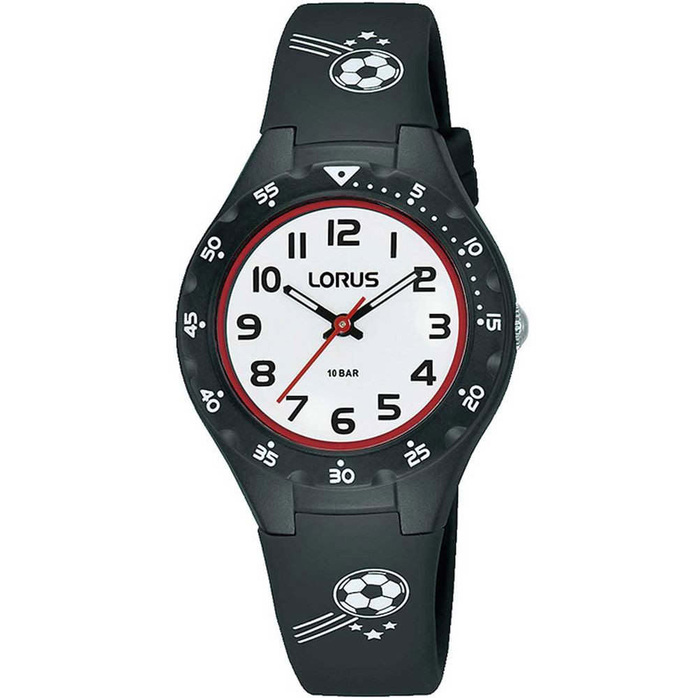 The material of the Lorus Kids child watch RRX45GX-9 watch case is plastic, its color is black, the material of the strap is silicon and its color is . The diameter of the watch case is 30 mm, its shape is wheel. The glass of the watch is plexiglas (plastic), its mechanism is quartz, and its water resistance is 10 atm (100m) (suitable for swimming).