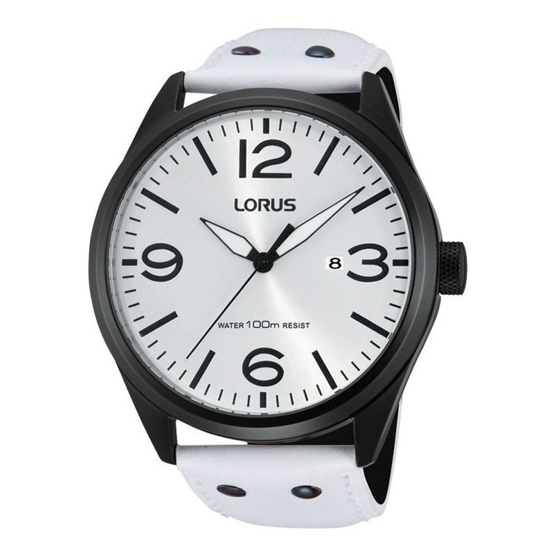 The material of the Lorus men's watch RH963DX-9 watch case is stainless steel, its color is black, the material of the strap is leather and its color is white. The diameter of the watch case is 46 mm, its shape is wheel. The glass of the watch is crystal (difficult to scratch), its mechanism is quartz, and its water resistance is 10 atm (100m) (suitable for swimming).