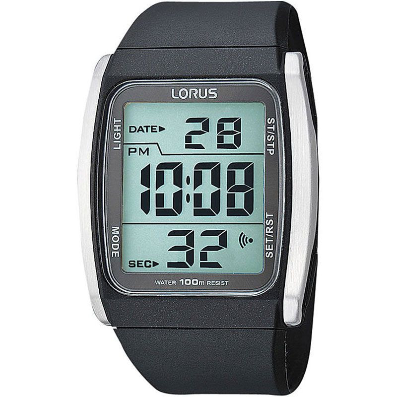The material of the Lorus Sport men's watch R2303HX-9 watch case is plastic, its color is Ezüst,Fekete, the material of the strap is silicon and its color is black. The diameter of the watch case is 40 mm, its shape is square. The glass of the watch is plexiglas (plastic), its mechanism is quartz, and its water resistance is 10 atm (100m) (suitable for swimming).