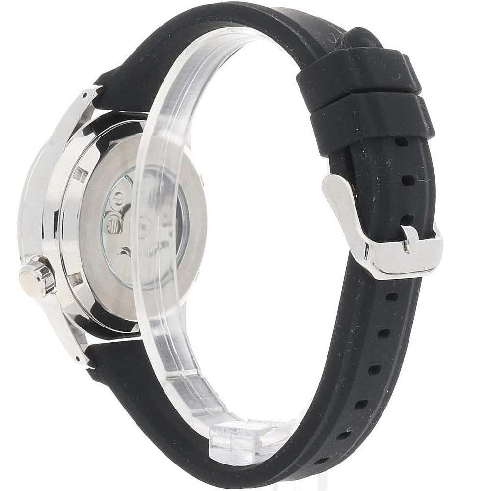 The material of the Lorus Sports men's watch RL455AX-9 watch case is stainless steel, its color is silver, the material of the strap is silicon and its color is black. The diameter of the watch case is 42 mm, its shape is wheel. The glass of the watch is crystal (difficult to scratch), its mechanism is automatic, and its water resistance is 10 atm (100m) (suitable for swimming).