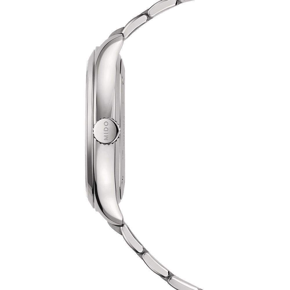 The material of the Mido Belluna Royal men's watch M024.507.11.031.00 watch case is stainless steel, its color is silver, the material of the strap is stainless steel and its color is silver. The diameter of the watch case is 41 mm, its shape is wheel. The glass of the watch is sapphire (scratch free), its mechanism is quartz, and its water resistance is 5 atm (50m) (highly drop resistant).