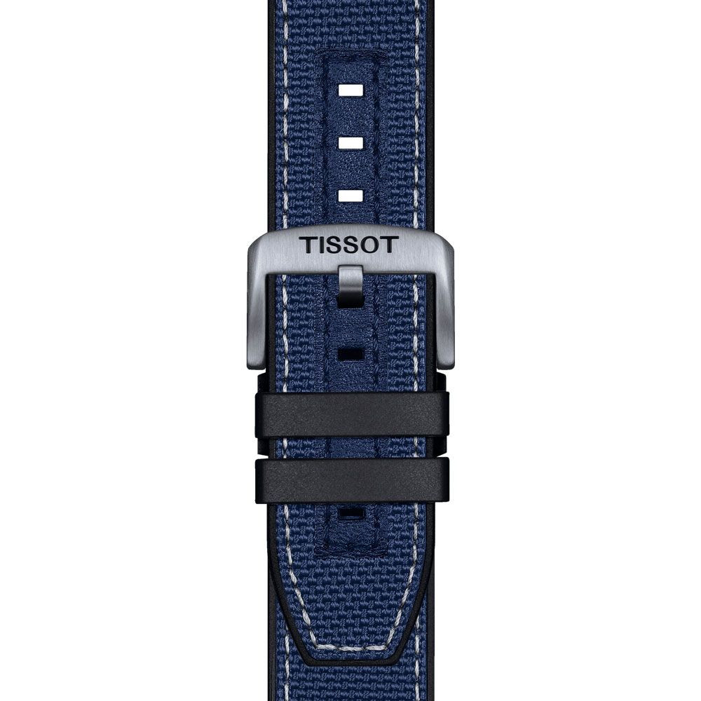 The material of the Tissot T-Sport Supersport men's watch T125.617.17.051.03 watch case is stainless steel, its color is silver, the material of the strap is Szövet,Szilikon and its color is Fekete,Kék. The diameter of the watch case is 45 mm, its shape is wheel. The glass of the watch is sapphire (scratch free), its mechanism is quartz, and its water resistance is 10 atm (100m) (suitable for swimming).
