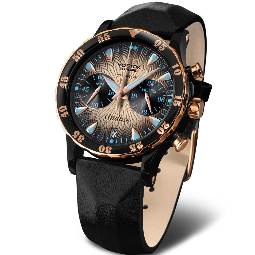 The material of the Vostok Europe Undiné women's watch set VK64-515E627 watch case is stainless steel, its color is black, the material of the strap is Szilikon,Bőr and its color is black. The diameter of the watch case is 39 mm, its shape is wheel. The glass of the watch is crystal (difficult to scratch), its mechanism is quartz, and its water resistance is 20 atm (200m) (suitable for diving).