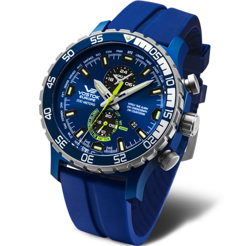 The material of the Vostok Expedition Everest men's watch YM8J-597E546 watch case is stainless steel, its color is blue, the material of the strap is Szilikon,Bőr and its color is blue. The diameter of the watch case is 47 mm, its shape is wheel. The glass of the watch is crystal (difficult to scratch), its mechanism is quartz, and its water resistance is 20 atm (200m) (suitable for diving).