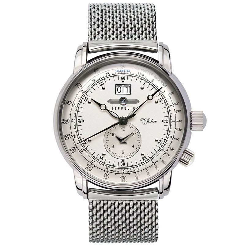 The material of the Zeppelin 100 Years men's watch 7640M-1 watch case is stainless steel, its color is silver, the material of the strap is stainless steel and its color is silver. The diameter of the watch case is 42 mm, its shape is wheel. The glass of the watch is crystal (difficult to scratch), its mechanism is quartz, and its water resistance is 5 atm (50m) (highly drop resistant).