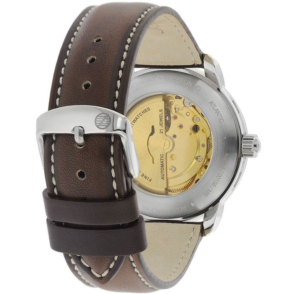 The material of the Zeppelin Atlantic men's watch 8466-5 watch case is stainless steel, its color is silver, the material of the strap is leather and its color is brown. The diameter of the watch case is 40 mm, its shape is wheel. The glass of the watch is crystal (difficult to scratch), its mechanism is automatic, and its water resistance is 5 atm (50m) (highly drop resistant).
