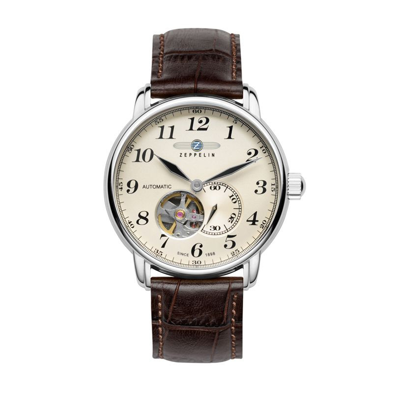 The material of the Zeppelin men's watch 7666-5 watch case is stainless steel, its color is silver, the material of the strap is leather and its color is brown. The diameter of the watch case is 40 mm, its shape is wheel. The glass of the watch is crystal (difficult to scratch), its mechanism is automatic, and its water resistance is 5 atm (50m) (highly drop resistant).