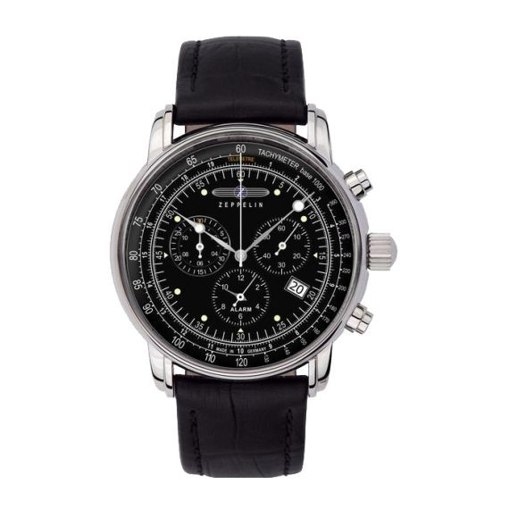 The material of the Zeppelin men's watch 7680-2 watch case is stainless steel, its color is silver, the material of the strap is leather and its color is black. The diameter of the watch case is 42 mm, its shape is wheel. The glass of the watch is crystal (difficult to scratch), its mechanism is quartz, and its water resistance is 5 atm (50m) (highly drop resistant).